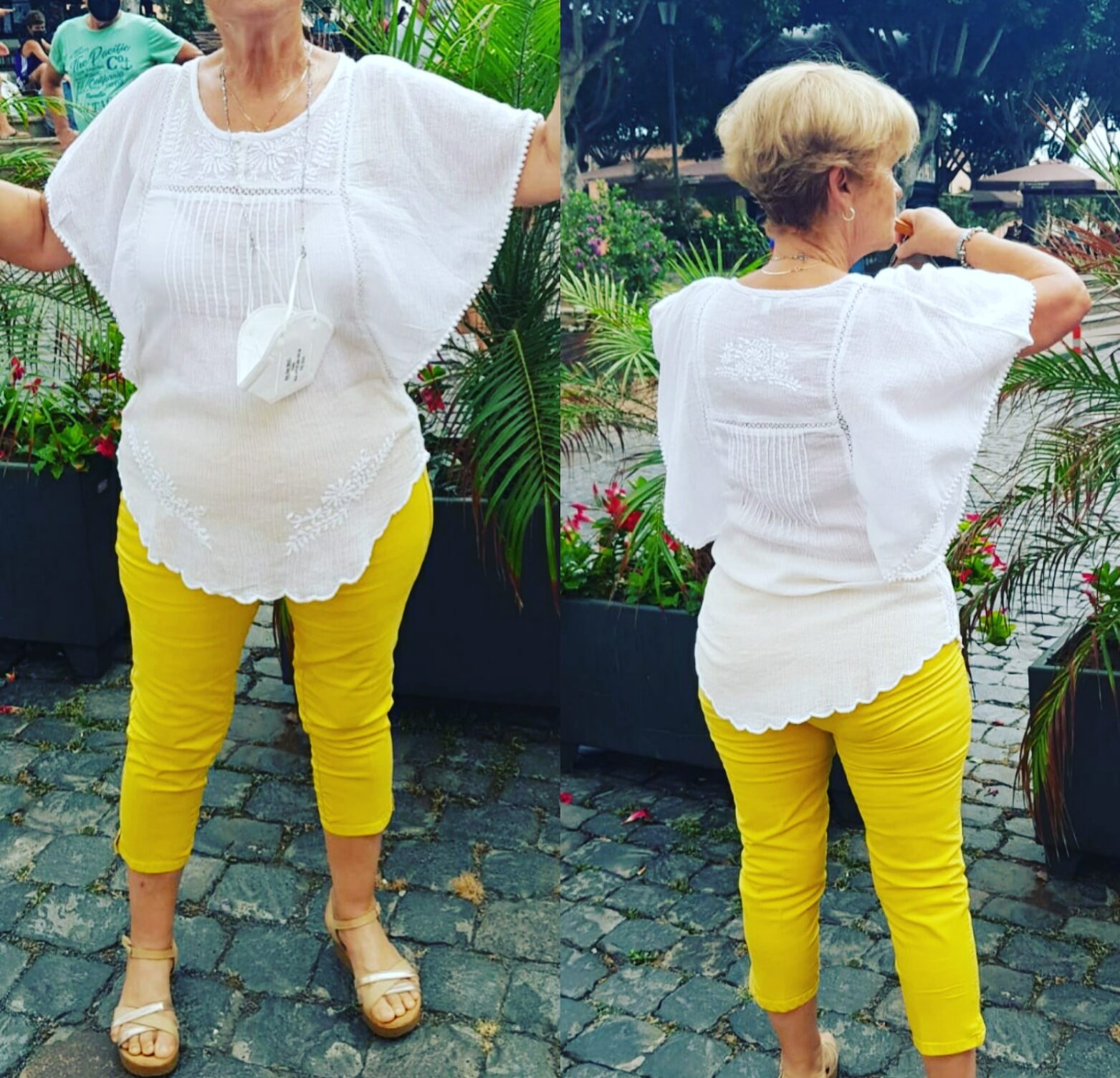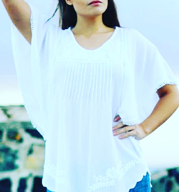 Blusa confeccionada 100% algodón, con mangas mariposa y bordados.