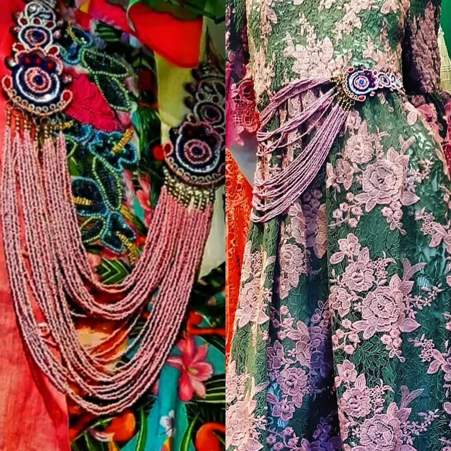 COLLAR MULTICADENA ROSA CON CANUTILLOS Y PEDRERÍA